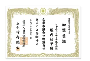 主たる業務 | 調査、興信探偵業務、調査機器販売、レンタル、カウンセリング業務 |